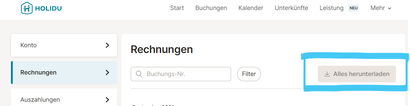 - Klicken Sie auf Rechnungen