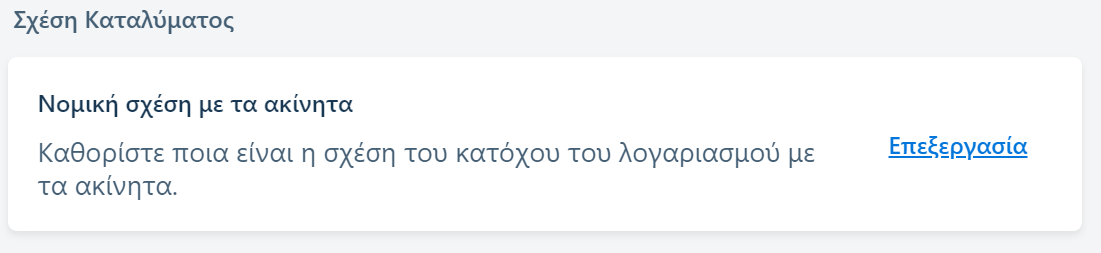 | Είναι υποχρεωτική η καταχώριση της νομικής σχέσης για κάθε ακίνητο στον λογαριασμό μου; |