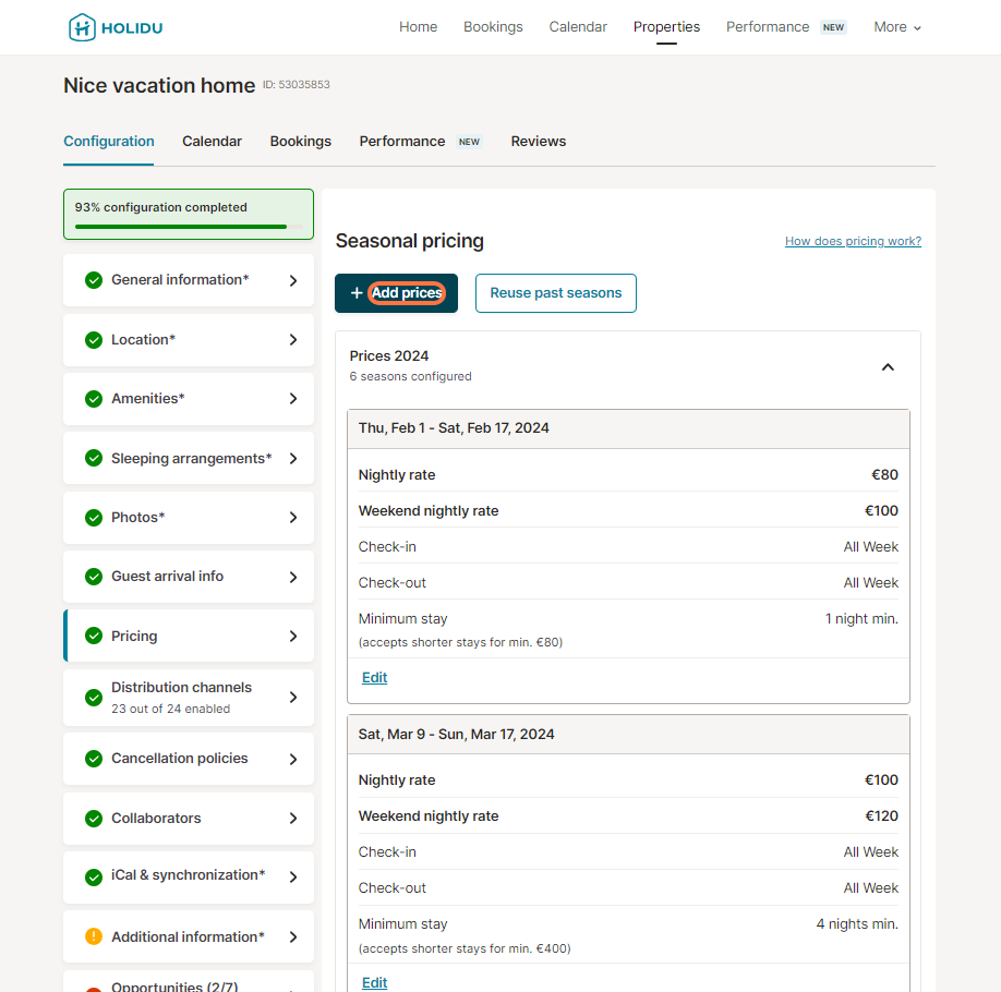 - Log onto your account, and select the property you wish to create a new season for - in case you have more than one.