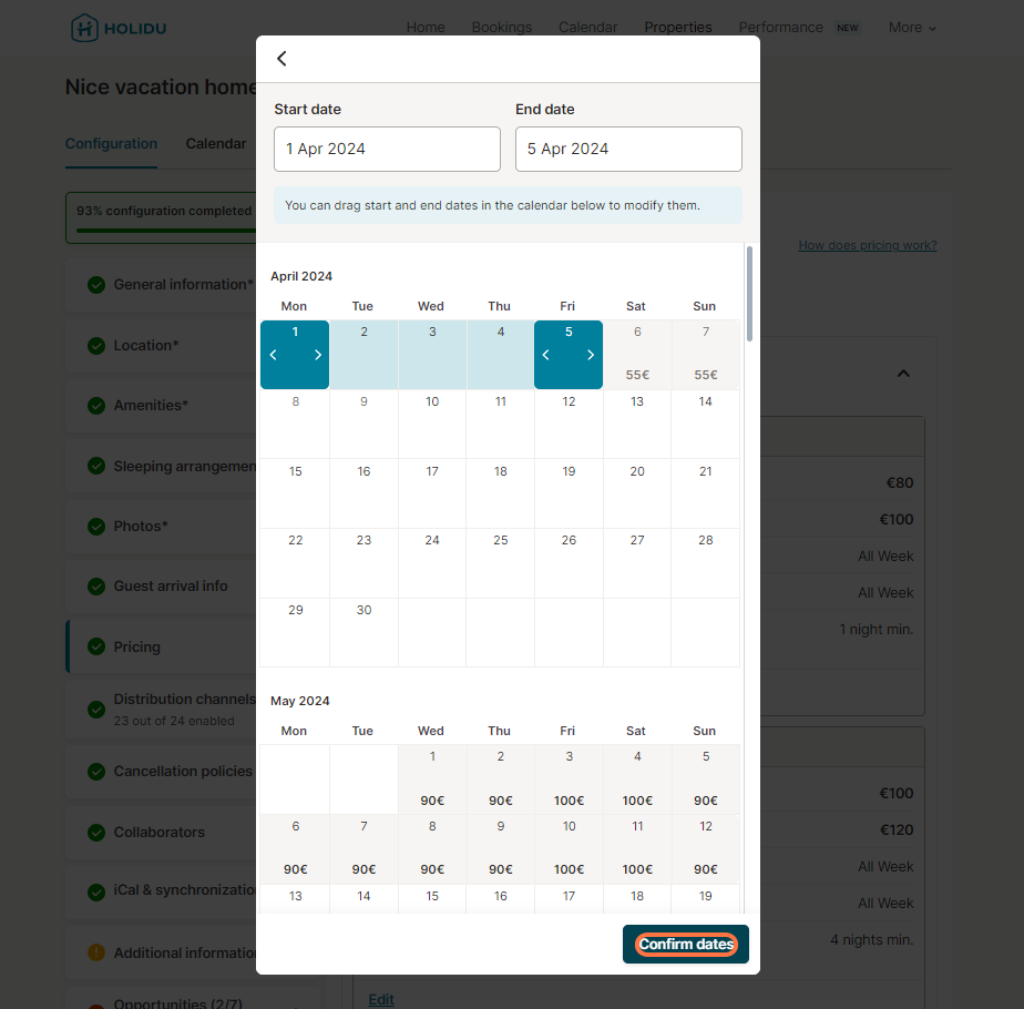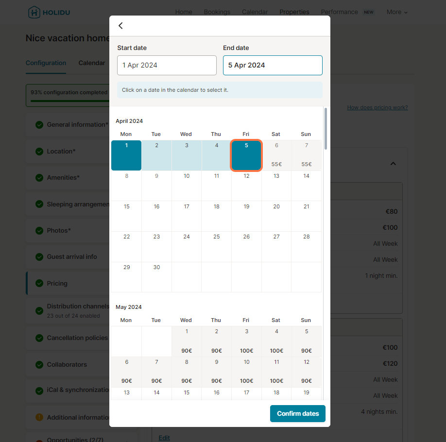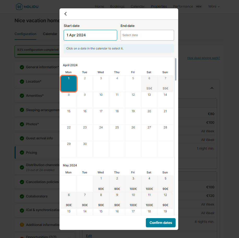 - When you have selected the dates for your season, click on “Confirm dates”.