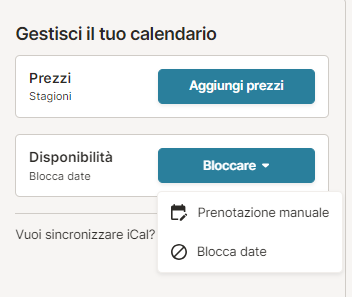 - Prenotazione manuale: questa opzione riguarda tutte le prenotazioni ricevute al di fuori di Holidu; è possibile aggiungere il nome dell'ospite e i dettagli della prenotazione.