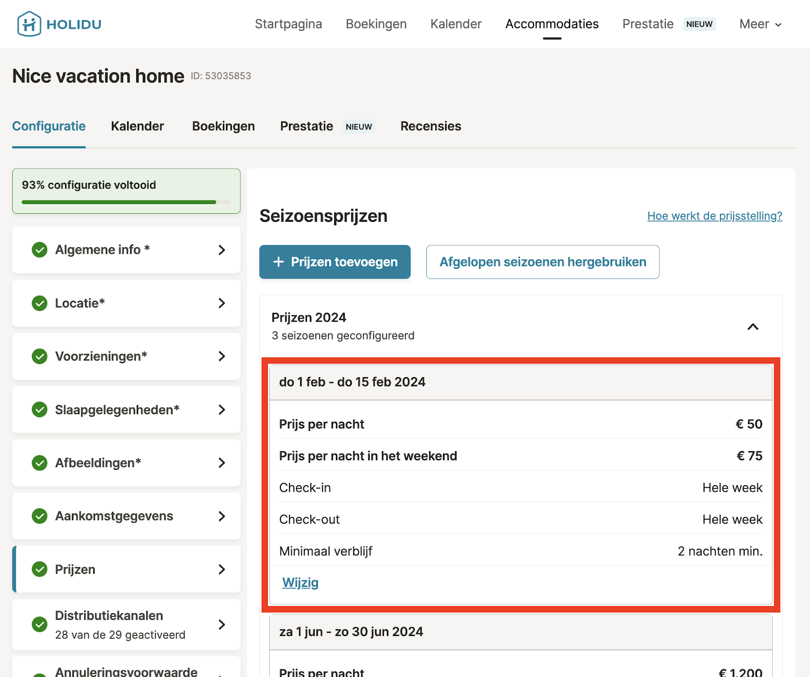 U zult een specifieke sectie vinden om dit te doen. U zult een nieuw seizoen moeten aanmaken om een andere prijs in te stellen voor feestdagen.