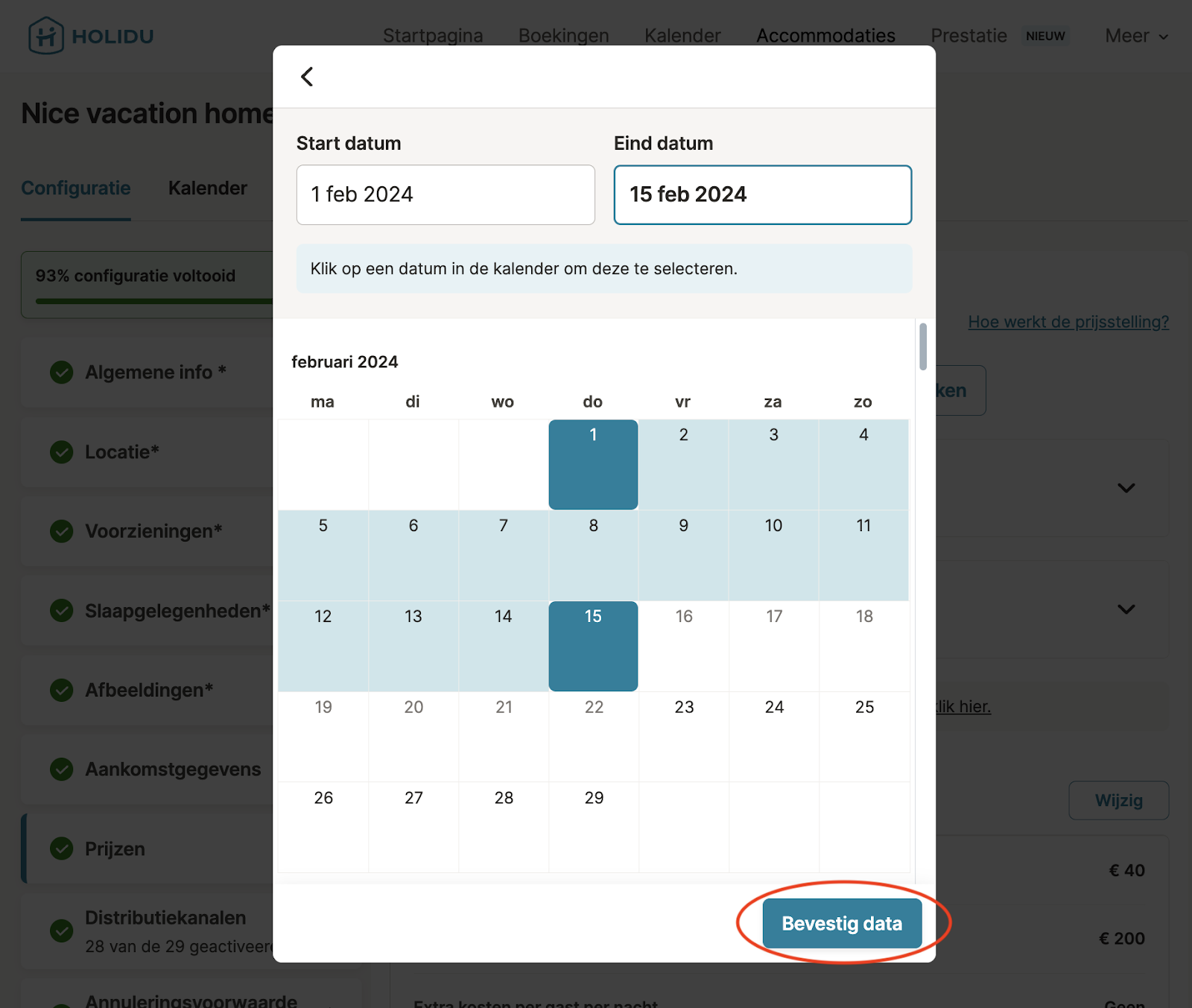 3) Selecteer de data in de kalender waarop u uw prijzen wilt toevoegen.
